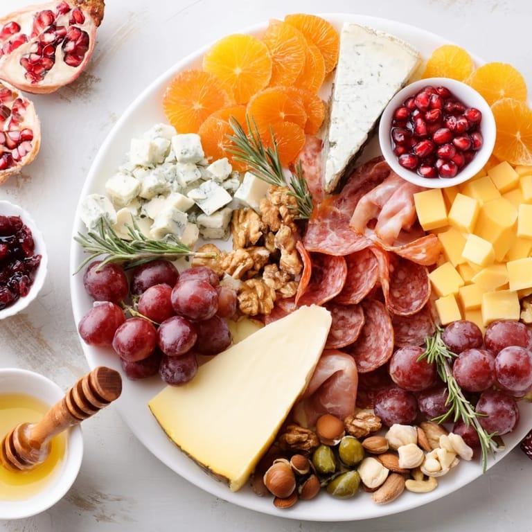 - Festive Extras: 1/3 cup cranberry sauce or red fruit chutney, 1/3 cup honey (with honey dipper), 1/2 cup marinated olives, 1/4 cup cornichons or mini gherkins, Seasonal fresh herbs (such as rosemary sprigs for garnish)