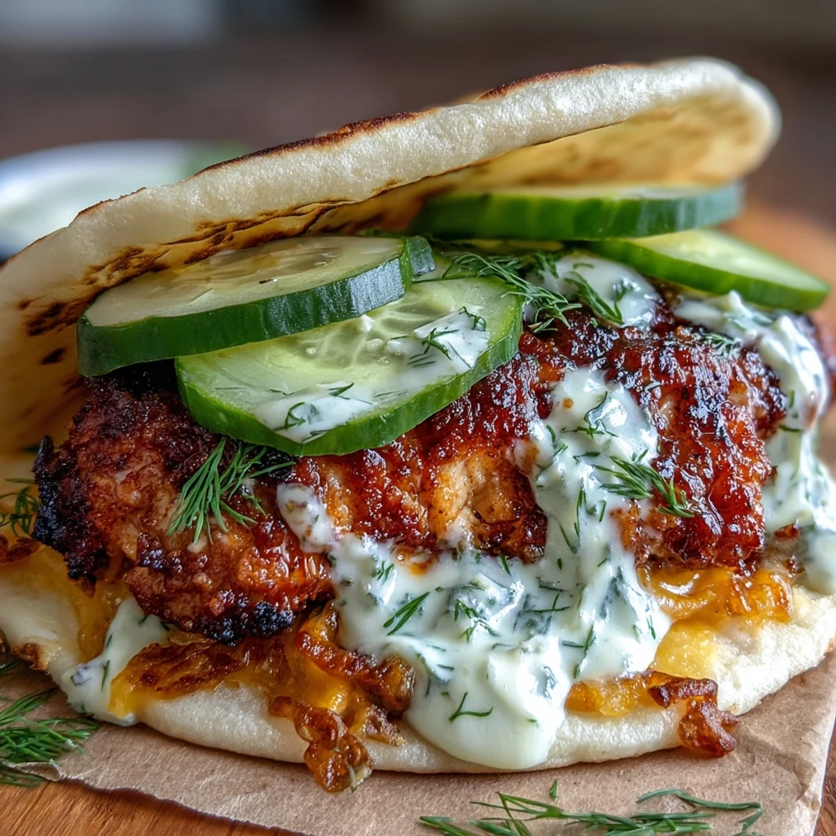 - To assemble, spread a spoonful of ranch sauce on the cheese side of each tortilla. Top with smashed chicken, sliced dill pickles, red onion, and shredded lettuce. Drizzle with additional ranch sauce if desired. Serve immediately.