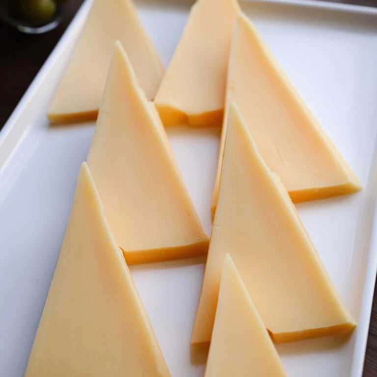 - Semi-firm cheese (Gouda, Edam, or Emmental), 250g, well chilled: The key here is choosing a cheese that's firm enough to hold a clean cut but not so hard that it shatters. I learned early on that chilling the cheese makes all the difference—it slices like butter when it's cold, giving you those beautiful, clean triangles that catch the light. Gouda brings a subtle sweetness, Edam is mild and approachable, and Emmental adds a slightly nutty note.