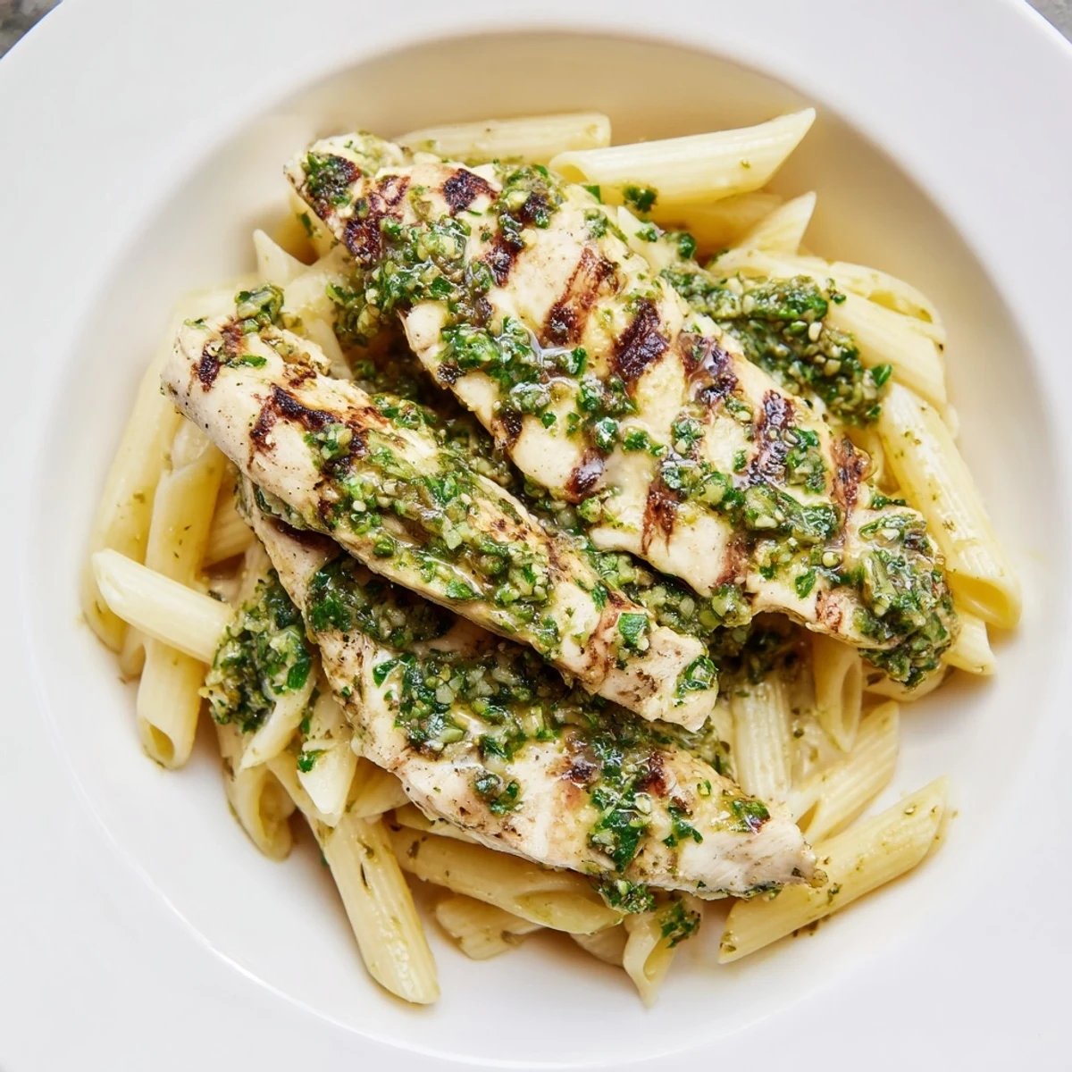 - Divide the pasta among bowls, top each one with sliced chicken, and drizzle the remaining chimichurri over the top. Finish with a sprinkle of fresh parsley and a wedge of lemon on the side if you want a little extra brightness.