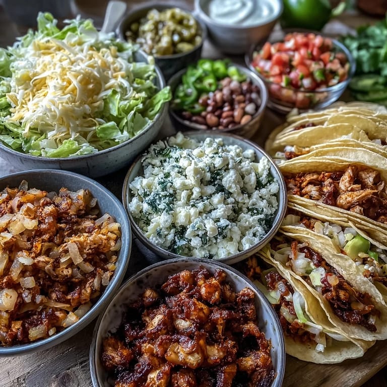 Save Celebrate Cinco de Mayo in style with a vibrant and interactive taco bar spread that invites everyone to build their own perfect taco. This festive setup features a mix of sizzling chicken, seasoned ground beef, and flavorful black beans, alongside fresh toppings and cheesy delights. Whether you're hosting a party or enjoying a family gathering, this customizable taco bar brings bold Mexican flavors and lively fun to the table.