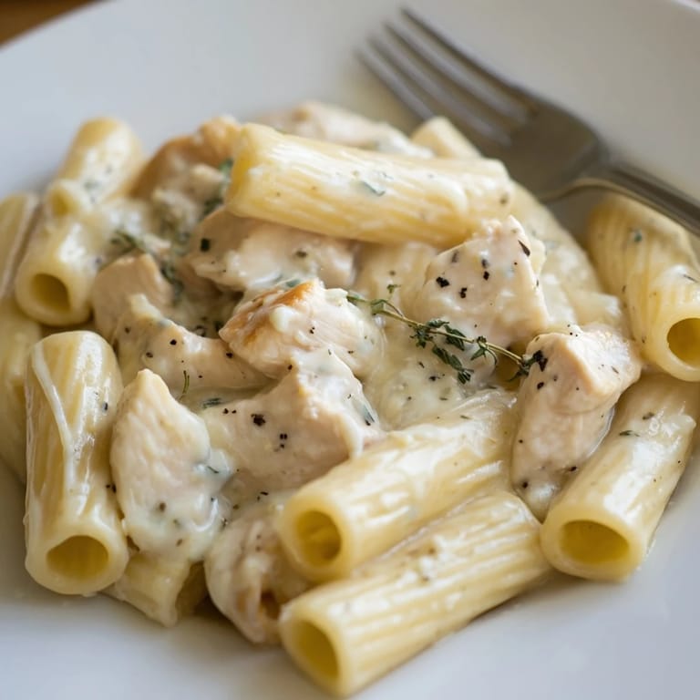 - Pasta & Protein: 300 g rigatoni, 2 cups diced chicken