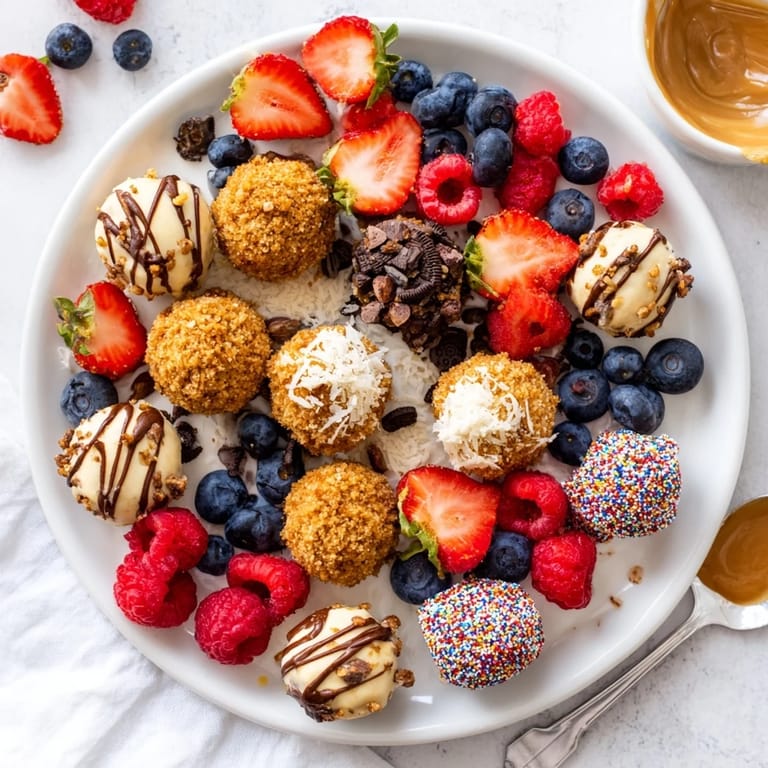 Save A show-stopping, interactive dessert board featuring creamy cheesecake bites and an array of delicious toppings for a customizable sweet experience.