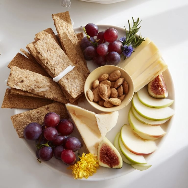 - Fruits: 1 bunch red grapes; 1 apple, thinly sliced; 1 pear, thinly sliced; 2 figs, quartered (optional, seasonal)