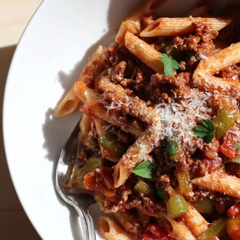 Save Whenever we gather for a weeknight dinner, this pasta always brings smiles around the table. The aroma of sautéed peppers and beef fills the kitchen and reminds me of cozy family evenings.