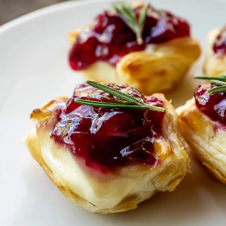 - Cheese & Filling: 120 g Brie cheese, rind removed if desired, cut into 16 cubes, 1/3 cup (80 ml) cranberry sauce (homemade or quality store-bought), 1 teaspoon fresh rosemary, finely chopped, 1 egg, beaten (for egg wash)