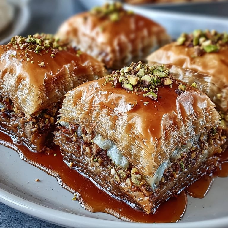 Save My neighbor brought over a tin of pistachio baklava one autumn afternoon, and the moment I bit into that first piece, something clicked. The way the phyllo shattered between my teeth, how the honey syrup pooled in the corners, the subtle earthiness of pistachios cutting through all that sweetness—it felt like a small revelation. I spent the next week pestering her for the recipe, and when she finally relented, I realized this wasn't just a dessert to make on special occasions. It became my answer to every potluck, every friend who needed comforting, every moment that deserved something a little more intentional than store-bought sweets.