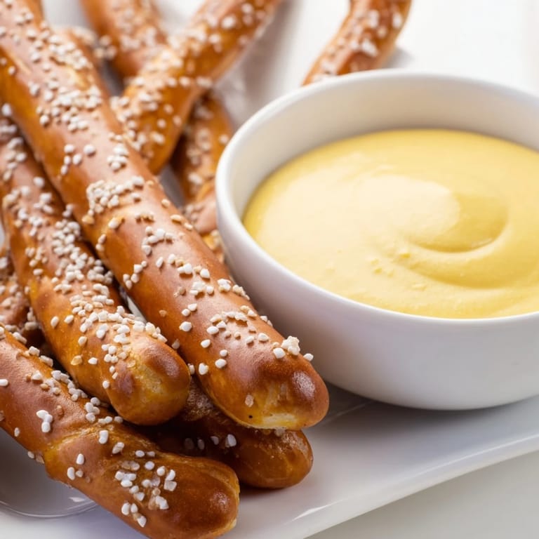 Save A classic and irresistible appetizer featuring crunchy pretzel rods paired with a zesty, homemade hot mustard dip—perfect for parties or snacking.