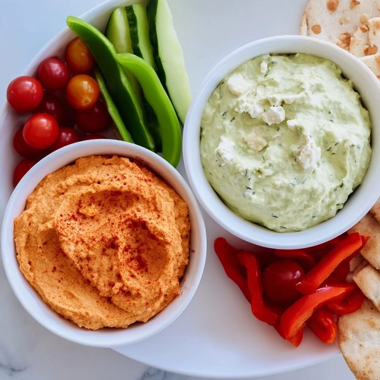 Serve this festive dip duo as a centerpiece appetizer at holiday parties or casual get-togethers. The vibrant colors pair beautifully with crisp white wines like Sauvignon Blanc or Pinot Grigio, enhancing the fresh herb and smoky pepper flavors. Arrange the dips on a rustic wooden board for a warm, inviting presentation.