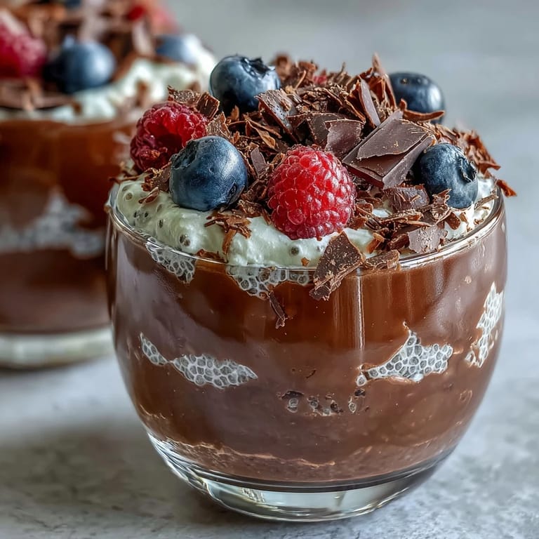 I initially made this as dessert, but then I started having leftover pudding in the morning and realized it's legitimately a breakfast that makes you feel less like you're eating healthy food and more like you're getting away with something delicious. The chia seeds keep you full longer than you'd expect, and the chocolate-cocoa combo feels indulgent without the mid-morning energy crash. Skip the whip topping for breakfast and just add granola on top, or keep it simple with just fresh berries.
